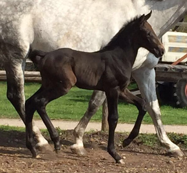Number Q ist sportlich, elegant und hat genügend PS. Er zeigt schon als Fohlen viel Elastizität und Bewegung.